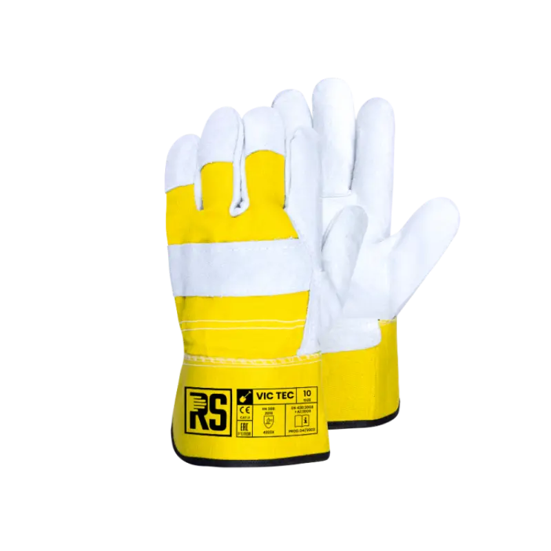 Rękawice wykonane z wysokiej jakości skóry dwoinowej bydlęcej oraz bawełnianego płótna, zapewniające trwałość, wygodę i odpowiednią wentylację dłoni.